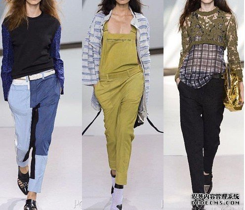 格纹印花碰撞,色块拼接、Rock印字T恤,不羁的下城Girl让人耳目一新。在保留皮革、豹纹等典型的Rock元素之外,最为称道的就是他超越常规的混搭理念,这里的超越尤其体现在印花、格纹、条块上,眼花缭乱的纹样被大胆的拼合在一起,不羁的摇滚范在不安常理出牌的设计理念下,被展现的淋漓尽致。九分裤、吸烟鞋、夹克、套头衫等等。Cool女孩漫不经心的中性混搭即将迎来它的鼎盛。