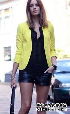 搭配上黑色的上衣以及皮质短裤,帅气十足,尽显欧美范儿。