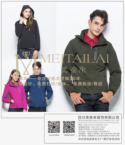四川大型服装企业,AAA级诚信企业,企业通过ISO9001质量体系认证,四川美泰来服饰有限公司专注服装定制20年,值得您的托付。随着社会经济发展,企业活动也愈来愈多,企事业单位,学校,团体冬季会进行各项的户外活动,如爬山,户外拓展,旅游等,使用到羽绒服,冲锋衣,防寒服的频率会越来越高,统一企业形象必然要统一服装并希望将企业团体logo等绣在衣服上,美泰来针对团体客户提供资阳冲锋衣定做,给您个性定制大批量冲锋衣,只要您想要的款式,美泰来都能给您设计打样,还可以提供哥伦比亚、北面、始祖鸟、狼爪品牌冲锋衣批发团购,全面满足您的需求。