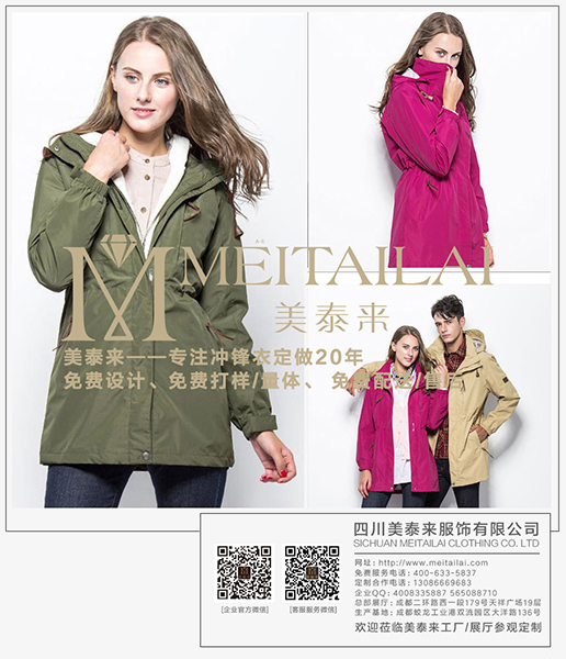 美泰来为您定做时尚冲锋衣羽绒服防寒服,企业全面通过ISO9001质量体系认证,AAA级企业信誉认证,资质齐全提供免费冲锋衣设计,免费咨询,免费量体送货服务,资阳冲锋衣定做电话13086669683,全国免费服务电话400-633-5887,企业qq4008335887,